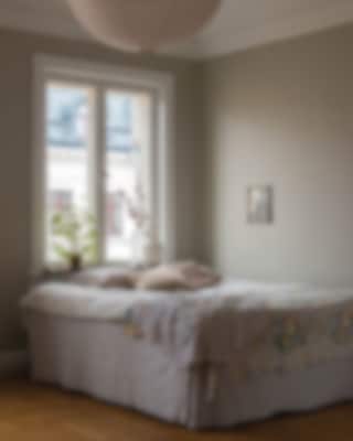 – Min son Elias skulle byta rum och valde färgen själv. Han behövde få intryck och ”lagom ljust” som han utryckte det själv. Jag var först lite skeptisk men det blev så bra med Lyckes kulör Nature beige! Det blev ett lugn och en harmoni som vi saknat innan. Väggen gifte sig även fint med både golv och stuckatur.