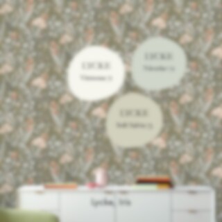 Matcha tapeten med kulör? Vitmossa 71, Näverlav 72 och Soft Salvia 73 är tre kulörer från Lycke Färg som skapar en härlig färgställning till denna tapet.