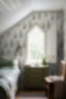 Den stormönstrade tapeten Herba har ett vackert mönster av prunkande ormbunkar och blad, som hämtade från sommarens skuggiga skogspromenader. Tapeten har krämvit botten och bladverk i olika, dämpade nyanser av grönt och grått. En älskad favorit som funnits med redan i tidigare Falsterbo-kollektioner och som passar utmärkt i till exempel kök, hall eller matrum.
