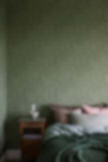Den mörka tapeten Hazels täta bladverk är hämtat direkt från ett äldre, handmålat originalmönster i Boråstapeters stora tapetarkiv. Denna färgställning med mörkgrön, nästan svart botten och lindblomsgröna blad är den som mest liknar originalet - som en skuggig hassellund. Tapeten finns också i två ljusare färgställningar. Den täta grönskan skapar en lugn, ombonad känsla och Hazel passar lika bra i barnrum som i sovrum och vid matplats.