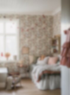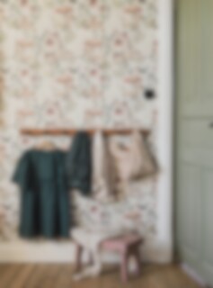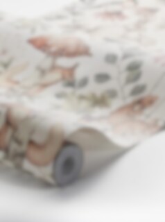 Med den ljusa barntapeten Minou på väggen förvandlas rummet till ett magiskt sagolandskap där ekorrar, rödhakar, skogsmöss och kaniner bjuder in till spännande resor i fantasins värld. Originalmönstret är målat i akvarell av Newbies designstudio. Tapeten är sedan tryckt på ett sätt som förstärker originalets härliga papperskänsla och mönstrets vackra skiftningar. Minou finns i två färgställningar. Här samsas skogens gröna, bruna och rostiga toner fint på en varmt cremevit botten.
