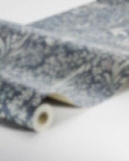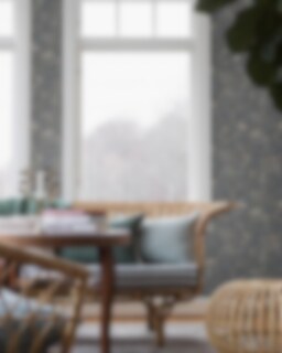 Tapeten Nocturnes drömska, slingrande bladverk med stiliserade små blommor och fröställningar mot en mjukt putsad botten passar lika fint i barnrum som i sovrum, vardagsrum och kök. Vi är många som älskar mönstrets tidlösa charm! Nu finns Nocturne i många olika färgställningar. Här med dovt gråblå botten, bladverk i blågrått och grågrönt med röda detaljer som skapar en harmonisk färgskala för ett ombonat rum.