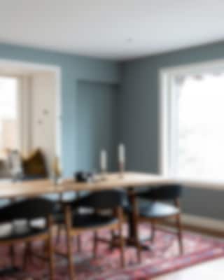 Lyckes kulör Blue Fjord, en blå färg som passar i exempelvis matrum och vardagsrum.