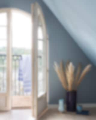 Lyckes kulörer Ocen Waves (vägg) och Rainfall (snedtak) är en härlig blå färg som passar i exempelvis sovrum.