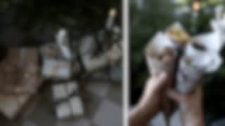 - Börja i änden där tapeten är dubbel och klipp ut som ett öga i valfri storlek, när du vecklar ut biten du klippt får du som ett par glasögon.