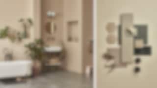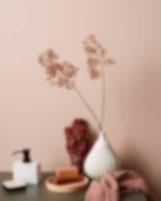 Bilder är från LADY Aqua och kulörer på bild till vänster är 2782 Deco Pink och väggen på bilden till höger är målad i kulören 10961 Raw Canvas.