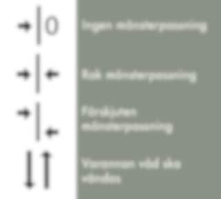 Dessa symboler visa om, och hur mycket, mönsterpassning tapeten har. Mönsterpassningen förklarar hur du ska passa dina tapetvåder gentemot varandra för att få fram korrekt mönsterbild på väggen.