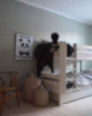 I dagsläget delar barnen rum och därför fick en våningssäng ta plats. Barnen ville ha sin favoritfärg, grön, så deras rum är målat i "Pale Linden", som de alla är otroligt nöjda med. De dova kulörvalen har matchats med nyslipade originalgolv som är behandlade med hårdvaxolja från Osmo.