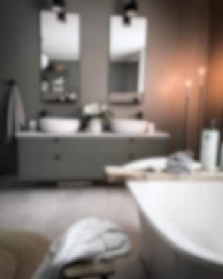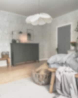 Jag ville sätta en egen prägel på husets alla rum. Då alla väggar var vitmålade så var det som att arbeta med ett blankt blad. Tidigare var huset en 3-familjsbostad så vi rev väggar och fick tänka om lite. Till exempel blev det gamla köket en tvättstuga vilket var smidigt för det låg redan på markplan och hade indraget vatten och avlopp. Ett gammalt sovrum gjorde vi om till badrum och det gamla badrummet till en bastu. – Jag går ganska mycket på känsla. Planen från start var att måla allt grått för att komma ifrån det kala vita men jag visste med mig att inom kort skulle jag vilja börja jobba med mer färg, rum för rum. Jag ramlade på någon fin tapet och matchade med en väggkulör och sen skulle en byrå adderas och på den vägen har det fortsatt.