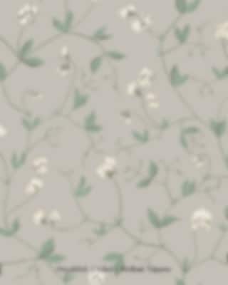 Tapeten Juliet från Midbec är fint matchad med ljusgrått. Skåpet är målad i kulören NCS S6005-G50Y.