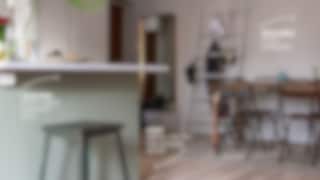 Även diskmaskinen färgsattes i samma kulör som resten av köket. Det går alldeles utmärkt att måla in en diskmaskin genom att först tvätta ytan, slipa lite lätt, grunda med häftgrund och sen använda samma lackfärg som till resten av köket. För att förstärka den franska bistrokänslan i köket sattes nytt kakel från Golvabia upp, ett vitt blankt kakel som är 10x20 cm, och en svart fog för att få en cool stil.