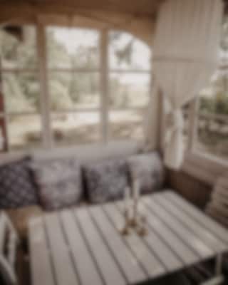 – När vi såg torpet första gången var det fullt av gamla möbler och väldigt omysigt, berättar Johanna. Man såg knappt golvet för allt bråte men potentialen fanns definitivt där. Johanna tog några bilder för att visa sambon men visste redan att hon så gärna ville ha det. Jag frågade Viktor om han var med på renoveringståget vilket han var! Utan honom hade det aldrig gått – åtminstone inte så fort, säger hon och skrattar. Huset är timrat och har lerklinade väggar och hela tre kaminer, två öppna rörspisar samt en järnspis i köket.