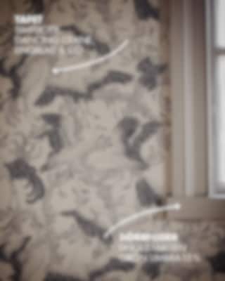 – Jag älskar alla Emmas mönster och tapetvalet föll på Dancing crane från Engblad & Co på grund av de vackra jordnära färgerna samt att det förstås alltid går ett par tranor här nedanför på gärdet, säger Johanna. Där fick golvlister, fönsterfoder och dörrposter linoljefärgen Grön Umbra 15%.