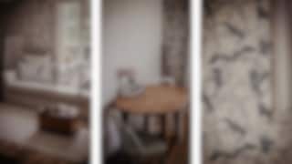 Berätta om valet av tapeter till sovrummet! – Jag föll för färgerna och mönstret i Tulippa från Boråstapeter. På kvällen ser det nästan ut som en lite stjärnhimmel med alla de små vita blommorna mellan de rosa tulpanerna, säger Johanna. Blommiga tapeter har dessutom suttit på väggarna förr vilket gjorde valet ännu lättare. Dörrfoder och golvlister är målade med linoljefärg Kimröksgrå 10% som passar väl ihop med tapen och dess blågrå blad.