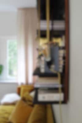 - Det har varit såå bra samarbete. Erik löper amok ibland och får en bild av något och kör på det, t.ex. vårt senapsgula tak och rosa väggar i förra lägenheten. Men då är det ju så roligt och bra att ha och göra med erfarna människor som kan komma med sin input, styra upp och knyta ihop säcken. T.ex. kom de med tips på olika glans men samma kulör på grejer. T.ex. högblank stuckatur och helmatt vägg, det blev ju hur bra som helst och det hade vi inte tänkt på själva.