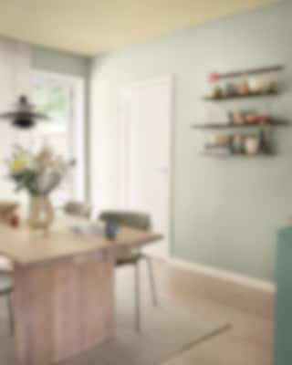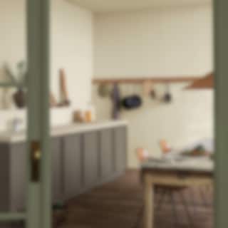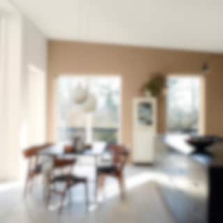 Vackert och harmoniskt kök med vägg målad i kulören Cashmere från LADY.