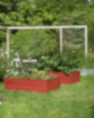 Planteringslådorna är målade med Beckers fönster- & snickerifärg för utomhusbruk i kulören Faluröd. Köp här.