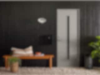 Fasaden är målad med DEMIDEKK Ultimate i kulören 0099 Svart och dörren är målad med DEMIDEKK Infinity Details i kulören 1376 Kontur.