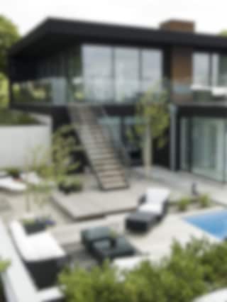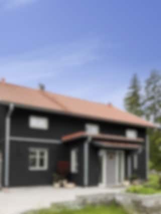 Fasad målad i helmatt färg från Beckers i kulören Asfalt.