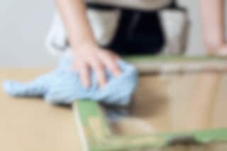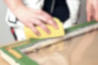 När träet blir fuktigt av vatten eller olja kan träfibrerna resa sig, vilket gör att ytan känns sträv och stickig. Slipa bort fibrer som rest sig med ett fint sandpapper när träet är helt torrt.