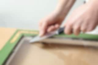 Sätt tejpen några millimeter från kittets kant.