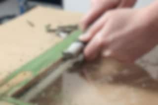 Skrapa med en färgskrapa.