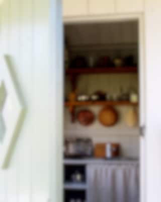 Lekstugan är målad i kulören NCS S 2005-Y20R och den gröna dörren i NCS S 5005-G80Y. Likaså bänken är målad i den sistnämnda kulören.