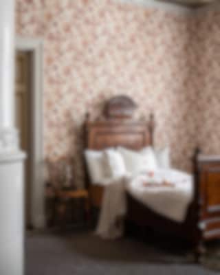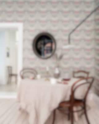 Prunkande pioner och sagolika rosor fyller väggen med ståtlig blomsterprakt. Mönstret från Sandberg, med anor från 1800-talet, tar för sig. Men de dova nyanserna gör tapeten, som kommer i tre olika färgställningar, till en harmoniskt vacker fond i rummet.