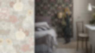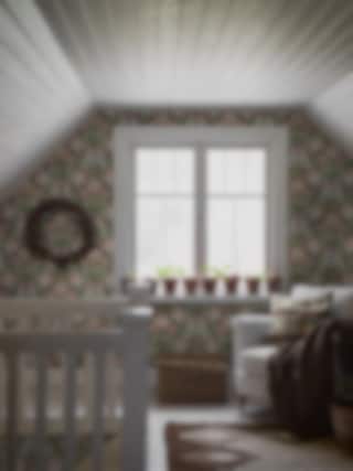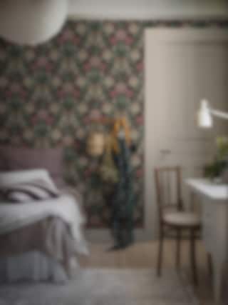 Ett klassiskt blomsterornamet med ett samtida uttryck, målat för hand av designer Jenny Hahne Gadd. Den täta mönsterbilden och djupa, mustiga färgskalan ger rummet en elegant, ombonad känsla.