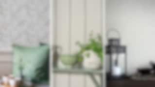 Tapet Trellis passar perfekt ihop med exemeplvis en bröstpanel i köket. Även mycket vacker över hela väggen. Finns i flera kulörer. Köp här.