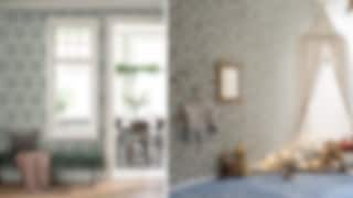 Gröna tapeten Jenny från Duro skapar en lummig och lugn känsla i rummet. Köp den här