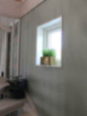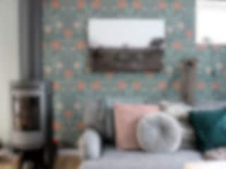 För att få en överblick skissade jag upp halva vardagsrummet med kulören Minty Breeze från Jotun som jag hade kärat ner mig i och den andra sidan i olika tapetmönster. Jag fotar helt enkelt rummet och lägger in den nya färgen och tapeten i ett program för att lättare se vad som blir bra ihop.