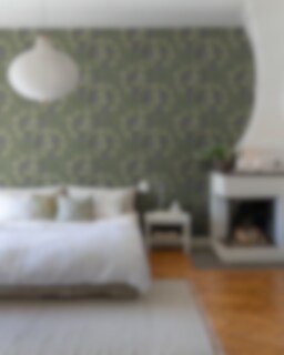 Vine representerar en klassisk tolkning av ett tidlöst William Morris-mönster från 1873. Tapeten är rikt dekorerad med eleganta vinrankor och välarrangerat bladverk, här i en brungrön färgställning med blå druvor mot en svart botten. Ett vackert mönster som skapar dimension och klär väggarna på ett charmigt vis.