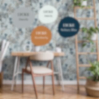 Matcha tapeten med kulör? Duva 82, Arktis 83, Kaveldun 84 och Solitary Blue är fyra kulörer från Lycke Färg som skapar en härlig färgställning till denna tapet.
