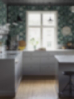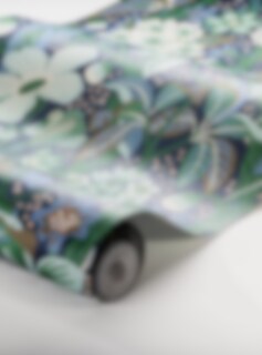 Den blommiga tapeten Friviva är en riktig blomsterfest, med en härlig mix av skandinaviska ängsblomster och exotiska växter. Tapeten är designad av formgivaren Hanna Werning, känd just för sina lekfulla, prunkande mönster. En uttrycksfull tapet som vågar ta för sig i rummet. Friviva finns i fyra färgställningar. Här ser du tapeten i en spännande färgskala med blomster i isblått, vitt, lila och grönt mot en mörk, mörkblå botten.