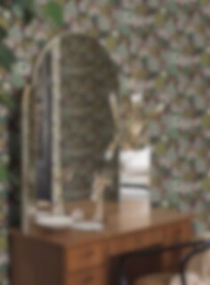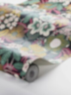 I den blommiga tapeten Kvackstepps frodiga mönster syns bland annat blommande vivor och rhododendron. En oväntad detalj är de grönfläckiga paddorna som gömmer sig i bladverket. En och annan bålgeting har också smugit sig in! Just botaniska mönster med lekfull twist är formgivaren Hanna Wernings specialitet, och denna tapet är ett bra exempel! Den härliga tapeten Kvackstepp finns i fyra färgställningar. Här ser du mönstret i olika nyanser av grönt, burgundy och rosa mot en mörkt gråsvart botten.