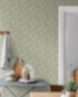 Hip Rose är en klassiskt småblommig tapet med nästan 100 år gamla anor. Nu väcker vi varsamt liv i nyponrosorna igen och trycker tapeten i sju olika färgställningar. Här ser du Hip Rose med ljusbeige blommor mot en varmt grön botten. En lugn, behaglig men också energigivande tapet som ger rummet en härligt ombonad vintage-känsla. Fin i såväl köket som i sovrummet, barnrummet eller den välkomnande hallen.