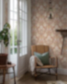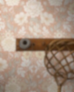 Den storblommiga tapeten Dahlia Garden pryds av ett slingrande blomsterornament, handmålat av designern Jenny Hahne Gadd. En underbar, Arts & Crafts-inspirerad tapet som vi nu trycker i nya färgställningar. Här har Dahlia Garden lånat sina toner från den ljumma sommarkvällens glödande solnedgång. Blommönstret går i nedtonade nyanser av beige, vetegrått och grågrönt mot en varm botten i jordigt rödorange, som blek terrakotta. En ombonad, rogivande tapet, perfekt i till exempel sovrum eller kök.