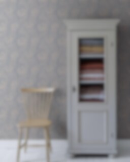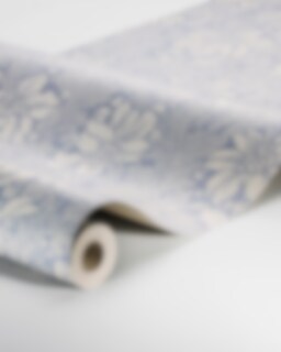 Den blommiga tapeten Acanthus pryds av ett fantastiskt, ornamentliknande mönster, skapat av Kåbergs redan på 1840-talet. Originalet trycktes för hand med träblock, och därefter har mönstret levt vidare i många olika färgställningar genom åren. Nu trycker vi Acanthus med traditionellt limtryck i milda, behagliga pastelltoner med ett uns svärta i. Här ser du det slingrande mönstret med lerbeige botten och en ny, spännande blå ton som påminner lite om lavendel.