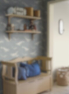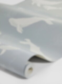 Med barntapeten Whales på väggen förvandlas rummet till en magisk undervattensvärld, där väldiga blåvalar och gråvalar sakta simmar bland småfisk och krill. Kanske leker de små tafatt med valarna? Ett sagolikt och rofyllt mönster, skapat av Newbies designstudio. Här ser du tapeten Whales i en vackert dämpad gråblå färgställning som ger rummet en ombonad och vilsam atmosfär.