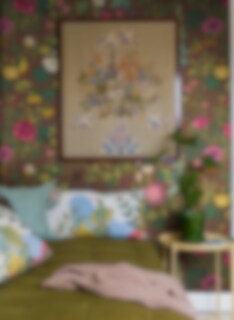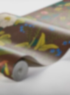 Sommar är ett prunkande blomsterhav som snabbt gjorde succé när det lanserades som möbeltyg 1964. Nu kan du få det tidlösa mönstret med pionerna, stockrosorna och kungsljusen som tapet. Vi har valt tre originalfärgställningar som vi vet blir vackra i stort format. Här ser du mönstret i varma, klara färger mot en varmt brun fond.
