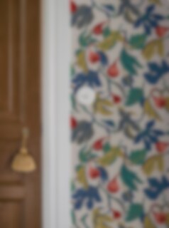 Figs är en frodig, sensuell tapet designad av Petra Börner. Ett levande bladverk med härlig energi och stora, rundade fikon som symboliserar mångfald. Originalet skar Petra ut med skalpell i flera lager papper. Nu trycker vi mönstret som tapet i fyra olika färgställningar. Här ser du den stormönstrade tapeten Figs i en härligt glad färgskala på ljus botten. Varmt röda fikon och blad i olika nyanser av grönt, grått, blått och senapsgult. En ljus tapet med ett varmt och livligt uttryck.