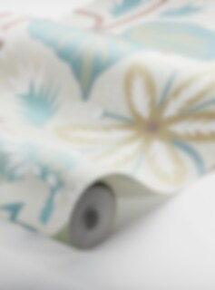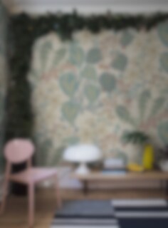 På tapeten Zingkorres storskaliga, botaniska mönster ilar ekorrar fram bland blommor och blad. På nära håll syns de tydligt, men tar du in hela den harmoniska mönsterbilden gömmer de sig gärna i den täta växtligheten. Designer Hanna Werning inspirerades av ekorren utanför sitt eget köksfönster. Zingkorre trycks i två varianter. Här ser du tapeten i ljusa, lugna och lite pudriga nyanser av grönt, terrakotta, vitt och gulgrönt på ljust gråbeige botten.