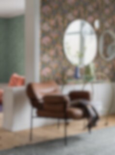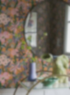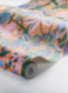Den färgsprakande, blommiga tapeten Friviva är översållad av exotiska växter, men här finns också ängsblomster från den svenska floran. En fantastisk tapet, skapad av Hanna Werning som är känd just för sina myllrande, botaniska mönster.Vi trycker Friviva i fyra färgställningar. Här ser du tapeten i rosa, lila, blått, grönt och vitt mot en glödande botten i dämpad orange. Underbar mönsterglädje i en varm, glad färgskala som passar både stora och små!